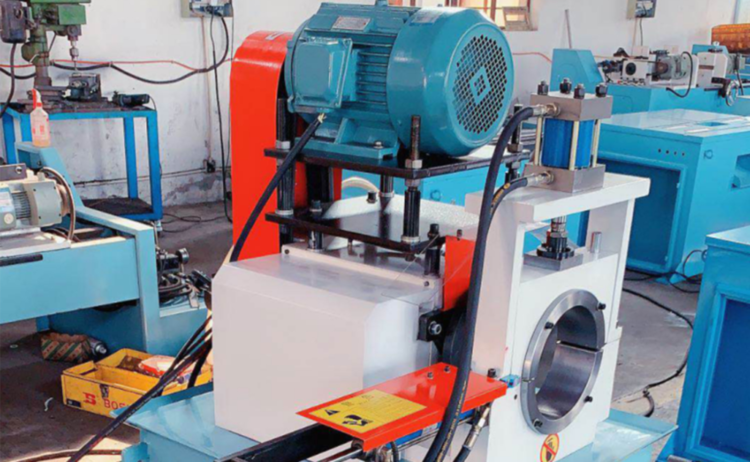 4.La cuchilla biseladora de la máquina se mueve automáticamente hacia adelante y hacia atrás, y la acción biseladora está totalmente controlada por el sistema hidráulico para un rendimiento suave y eficiente.